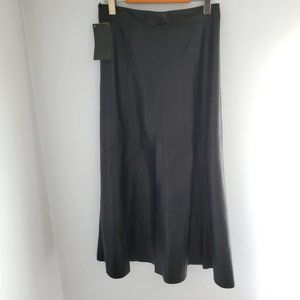 Zara Black Faux Leather A-Line Midi Skirt, Small