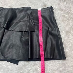 Zara Black Faux Leather A-Line Mini Skirt Ruffle Size Medium NEW with Tag
