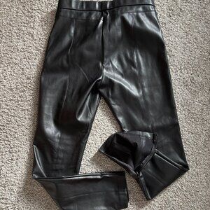Stunning pair of Zara faux leather leggings. There's a reason fashion bloggers are obsessed with these! These leggings are made with an innovative vegan leather that's supple, incredibly stretchy, and contours to your body without bagging out