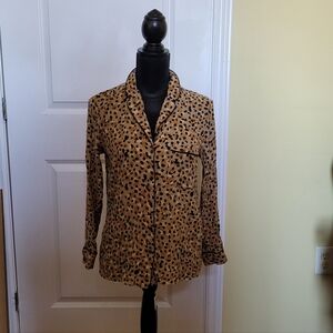 Chic black faux leather top. Features peplum hem. Long sleeves for a sleek look.