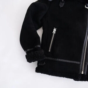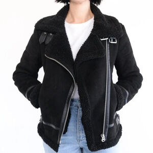 Zara Black Faux Shearling Bomber Moto Jacket Small