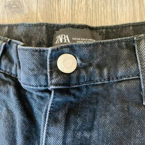 Stylish black flare jeans. Wide leg design. Frayed hem for a trendy look.fits closer to a 6