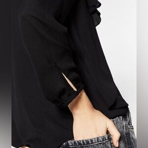 - Zara Basic Collection Floral Embroidered Blouse Size: XS Color: black Style: button cuff long sleeve - tier ruffle front trim and button back closure - semi-sheer