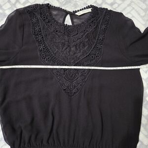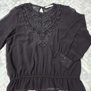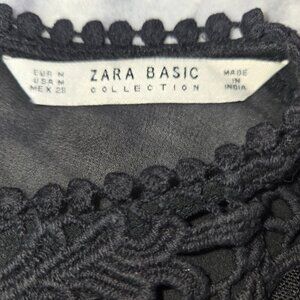 Zara Black Floral Embroidery Lace Sheer Blouse, size M