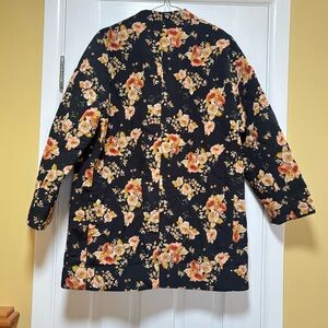Elegant black jacket with vibrant floral design. Ideal for stylish outings. Oversized fit. Could fit size M as well. Worn once.