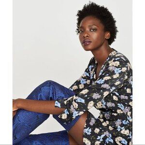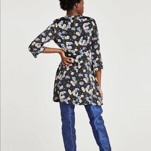 Zara Black Floral Printed Faux Wrap Dress S