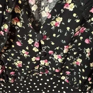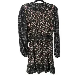 Zara Black Floral and Spotty Long Sleeve Tea Dress Mini Dress Contrast Print S