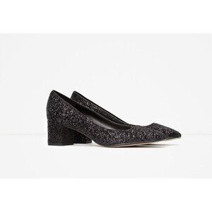 Zara Black Glitter Block Heels - 36/5.5-6US, BNWOTs! Made in Portugal 🇵🇹