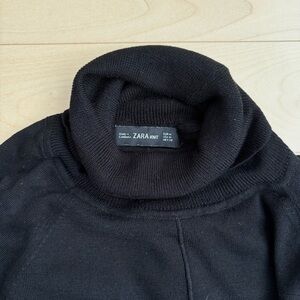 Classic black Zara knit turtleneck sweater, with high-low hem and slit details. Perfect for any occasion.