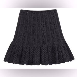 Zara Black Knit Crochet Woven Ruffle Skirt