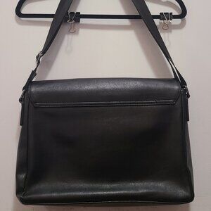 Sleek black laptop bag. Features adjustable strap. Ideal for work or travel.