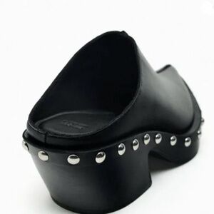 Zara Black Leather Studded Clogs. NWT, Size 38/7.5 NWT