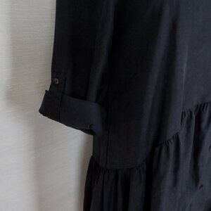 Zara Black Lyocell Blend Gathered Mini Summer 3/4 Sleeve Shirt Dress Sundress