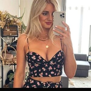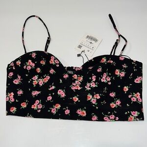 ZARA Black Microflower Floral Strappy Crop Corset top size S