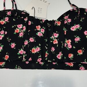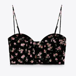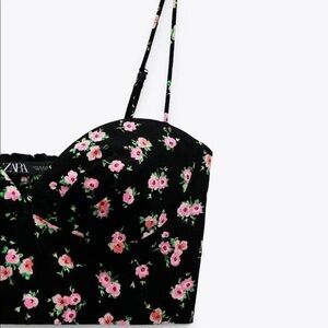 ZARA Black Microflower Floral Strappy Crop Corset top size S