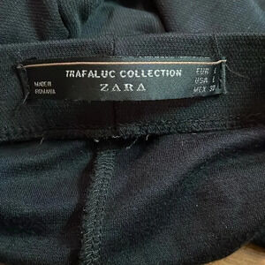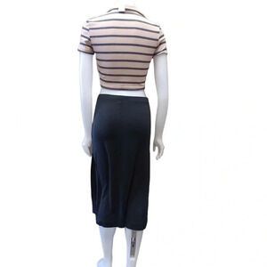 All black this midi, has two large side slits. The waist is elasticized and the garmet has four way stretch.