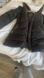Cozy black puffer with detachable hood. Features zip pockets and sleek design.