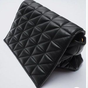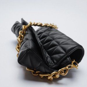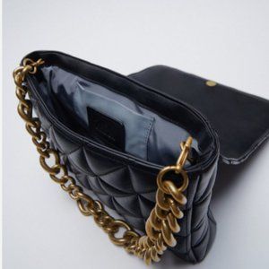 Zara Black Quilted Shoulder Bag with Gold Chain
