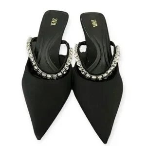 Zara Black Rhinestone Heel Mules Size 37