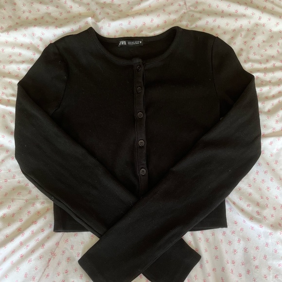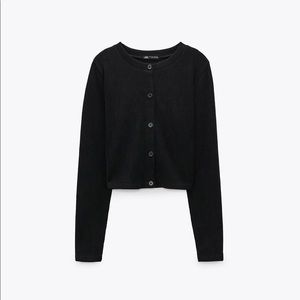 Zara Black Ribbed Button-Front Cardigan