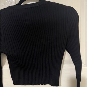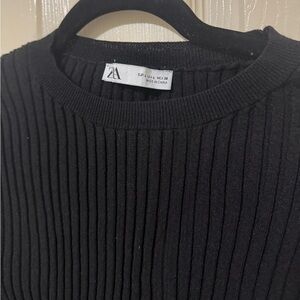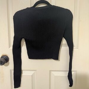 Zara Black Ribbed Cropped Long Sleeve Top | Size L