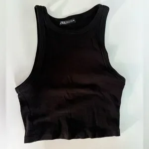 Zara Black Ribbed Racerback Crop Top