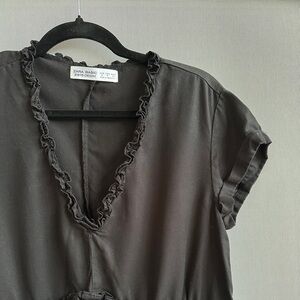 Zara | Black Ruffle Trim Loose Fit Mini Dress