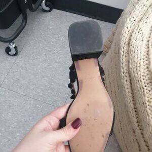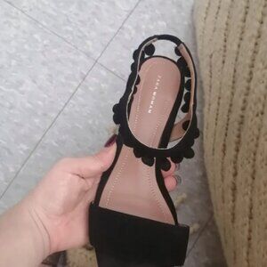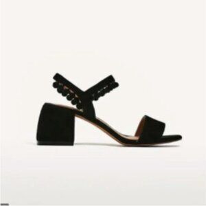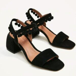 An adorable pair of sandals from Zara. So comfy and versatile. The pom pom details make them really unique. In great used condition. There is some wear on the bottom and some marks on the black material. Everything is shown in the photos so inspect them carefully. They still look almost brand new.