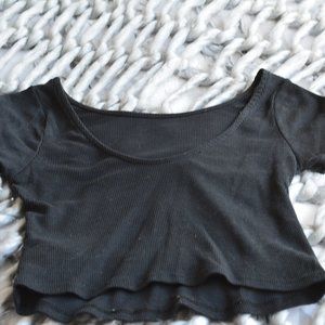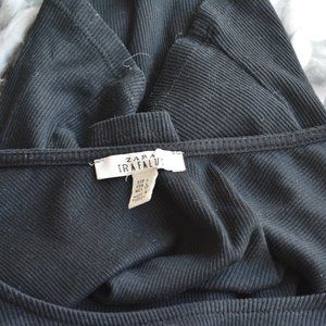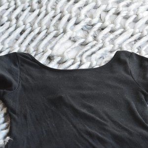 Great used condition with no flaws. Size L but fits smaller. Scoop neck with a lower scoop back, ribbed, very stretchy. No fabric tag but think this is cotton.