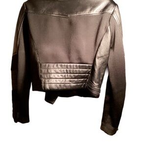 Zara Black Vegan Leather Jacket double breasted Zipper Stretch Sleek Design L