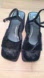 Zara Black Velvet Wedge Sandals