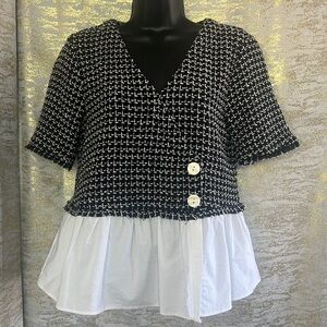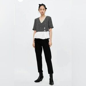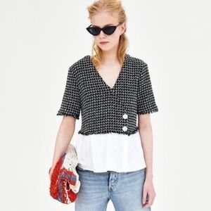 Zara Black and White Cuerpo Combinnado Contrast Tweed Top Size S