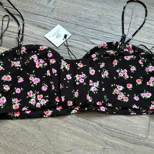 ✨🆕Zara🆕✨ | Black and pink floral bustier crop top