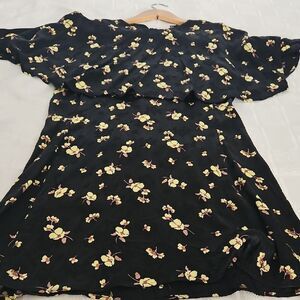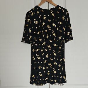 This chic sundress from Zara features a black base adorned with delicate yellow floral prints. Designed with a crew neck and flutter sleeves, it offers a casual yet stylish look perfect for work or leisure. The mini length adds a playful touch, making it a versatile addition to your wardrobe.