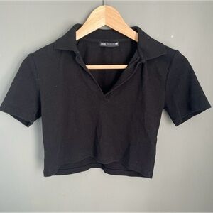 Zara Black cropped Short Sleeve Collared Shirt. Runs small.
