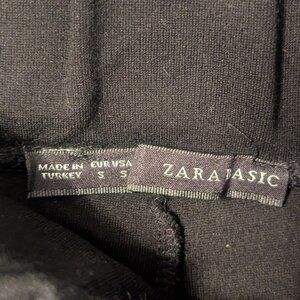 Zara Black dressy leggings with faux leather pockets, zipper detailing size small