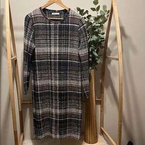 New without tag. Excellent condition. Back hidden inseam zipper closure. Buttoned wrist cuffs. Gathering ruching at side waist.
