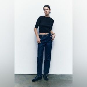 Black half-sleeve sweater from Zara that has a back zipper design. Soft and versatile. Ideal for layering.