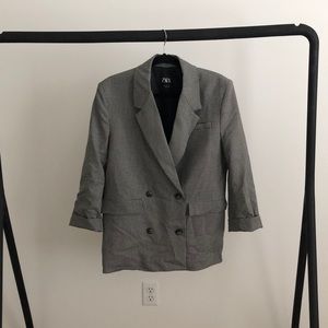 Oversized double breasted blazer from Zara. Small check print, really cool structured look. Size Xs, but oversized. Perfect condition, never worn, just need an iron!