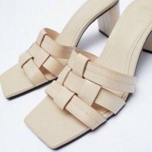 Zara Block Heel Leather Sandals (Size 8)