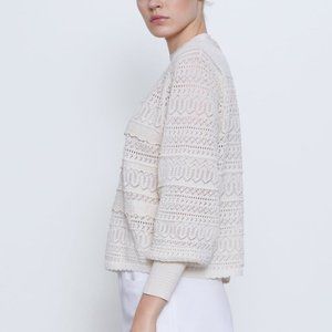 Zara Blogger Favorite Embroidered Knit Lace Sweater Balloon Sleeve Victorian - M