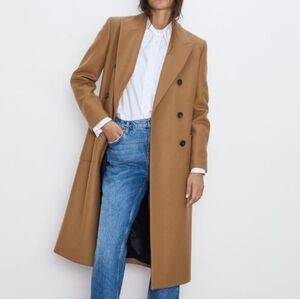Zara Blogger Favourite Camel Manteco Wool Blended Double Breasted Coat XXL