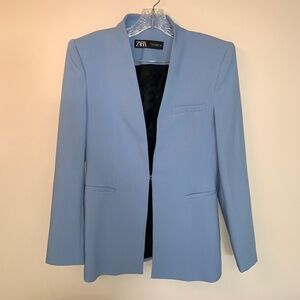 Zara Bloggers Fav Lapelless Fitted Blazer Blue M