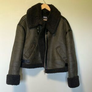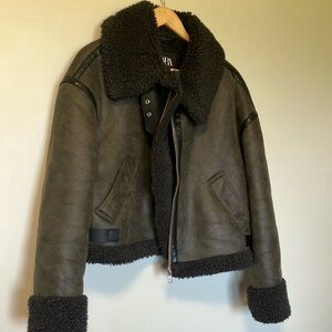 Zara Bloggers Favorite Dark Green Faux Shearling Jacket