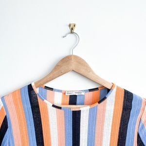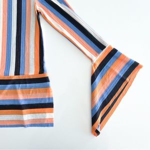 Zara Blouse Horizontal Vertical Stripes Bell Sleeves Women's S Orange Blue
