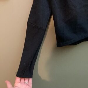 This Zara sweatshirt features a stylish boxy crop design in a black hue, complete with long sleeves and a classic crew neck. Perfect for a relaxed yet chic look, it offers a comfortable fit ideal for casual outings. The shoulders do have shoulder pads to make it look very boxy.