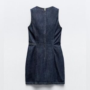 A good denim dress is a must this season, and this one from Zara is my favorite. Short with a round neck and sleeveless sleeves, it has a front slit hem and a metal zipper. The contrasting stitching detail looks fantastic and adds a unique touch