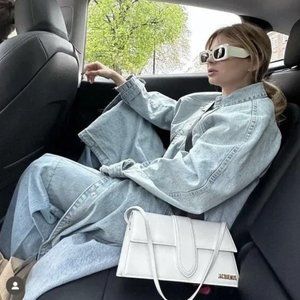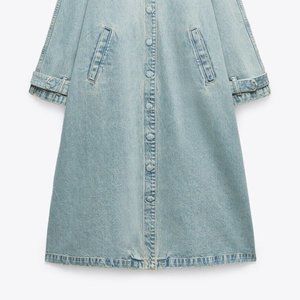 Stylish denim trench coat. Relaxed fit. Perfect for layering.