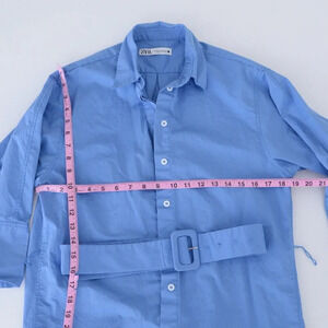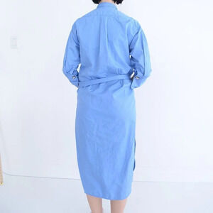 Zara Blue Full Length Button Up Dress w/ Belt Midi Dress Size XS