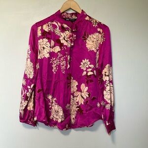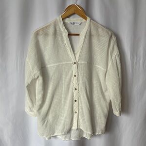 This chic Zara blouse features a striking puff sleeve design and a smocked crop style, perfect for a casual yet fashionable look. The light blue color adds a refreshing touch, while the elasticated hem ensures a comfortable fit. Ideal for pairing with high-waisted bottoms for a trendy ensemble.